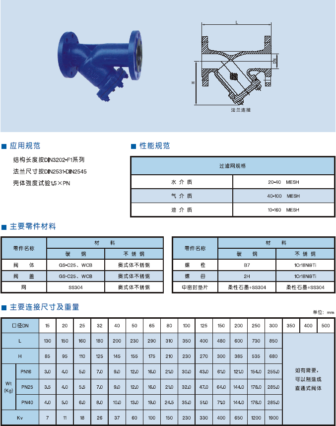 德標(biāo)Y型過濾器DIN3202-F1系列結(jié)構(gòu)長度標(biāo)準(zhǔn);DIN2531-2545法蘭標(biāo)準(zhǔn);殼體強(qiáng)度試驗為1.5*PN。 德標(biāo)Y型過濾器產(chǎn)品采用直流式結(jié)構(gòu),流體阻力相對較小,過濾網(wǎng)于高密度不銹鋼,安裝于管道過濾流體介質(zhì)販的雜質(zhì)與顆粒 德標(biāo)Y型過濾器適用于熱油系統(tǒng)、電站、蒸汽系統(tǒng)、熱水系統(tǒng)、熱電廠、天然氣供應(yīng)系統(tǒng)、水循環(huán)系統(tǒng)、冷凍系統(tǒng)等行業(yè)。 |