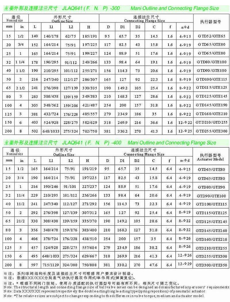 | ANSI標(biāo)準(zhǔn)氣動(dòng)球閥JLQ641結(jié)構(gòu)長度及連接法蘭尺寸可根據(jù)用戶要求設(shè)計(jì)制造。主要零部件及密封圈的材質(zhì)可根據(jù)實(shí)際工況條件或用戶特殊要求設(shè)計(jì)選用。數(shù)據(jù)XXX/XXX分別表示氣動(dòng)執(zhí)行器雙/單作用式(彈簧復(fù)位)。根據(jù)不同閥門扭距使用介質(zhì)選配的執(zhí)行器型號(hào)可能有所不同,相關(guān)尺寸隨之變化。 |