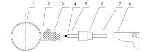 1、探頭 2、球閥底座 3、球閥 4、導向螺紋 5、緊鎖螺母 6、接線盒 7、信號電纜 |