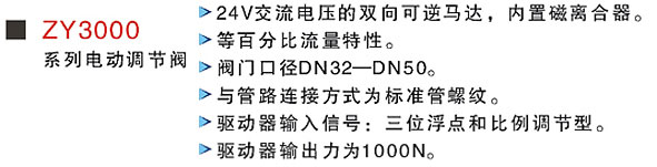 ZY-3000系列電動調節(jié)閥是我公司的優(yōu)質產品之一,在上海ZY-3000系列電動調節(jié)閥廠家中享有極高的品質聲譽與服務評價.