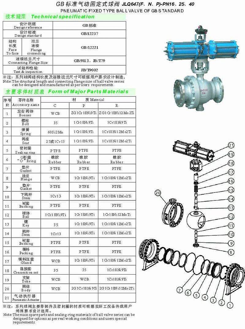 GB標(biāo)準(zhǔn)氣動固定式球閥JLQ647