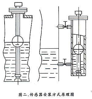 3、傳感器在被測(cè)容器上,其安裝方法見圖二,傳感器下端好與容器底部固定牢。