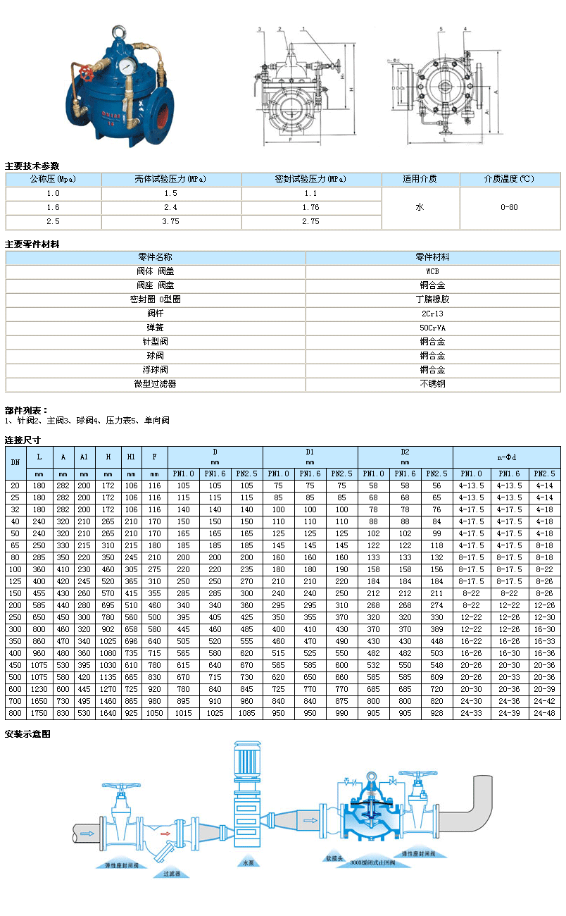 300X緩閉止回閥由主閥、單向閥、針閥、球閥、微形過濾器和壓力表組成水力控制接管系統(tǒng)。利用水力自動操作,可使主閥得到佳的開啟或關(guān)閉速度。防止水鍾水擊的產(chǎn)生,以達到緩閉消聲的效果。本產(chǎn)品利用水力自力控制,不需要其它裝置和能源,保養(yǎng)簡便,開啟及緩閉平穩(wěn)。本系列閥門產(chǎn)品廣泛用于高層建筑、生活區(qū)等供水管網(wǎng)系統(tǒng)及城市供水工程。當閥門從進口端給水時,水通過微型過濾器、針閥、單向閥進入主閥控制室,再經(jīng)過球閥排水至下游。因為針閥開度小于球閥開度,即主閥控制室的排水速度大于進水速度,因此控制室壓力降低,作用于主閥盤下端的進口壓力打開主閥向下游供水。當管道停止供水時,若下游水開始回流,一部分回流水經(jīng)球閥進入主控制室,由于單向閥作用,回流水不能從主控制室流出,引起主控制室逐漸升壓,緩緩關(guān)閉主閥。 |
